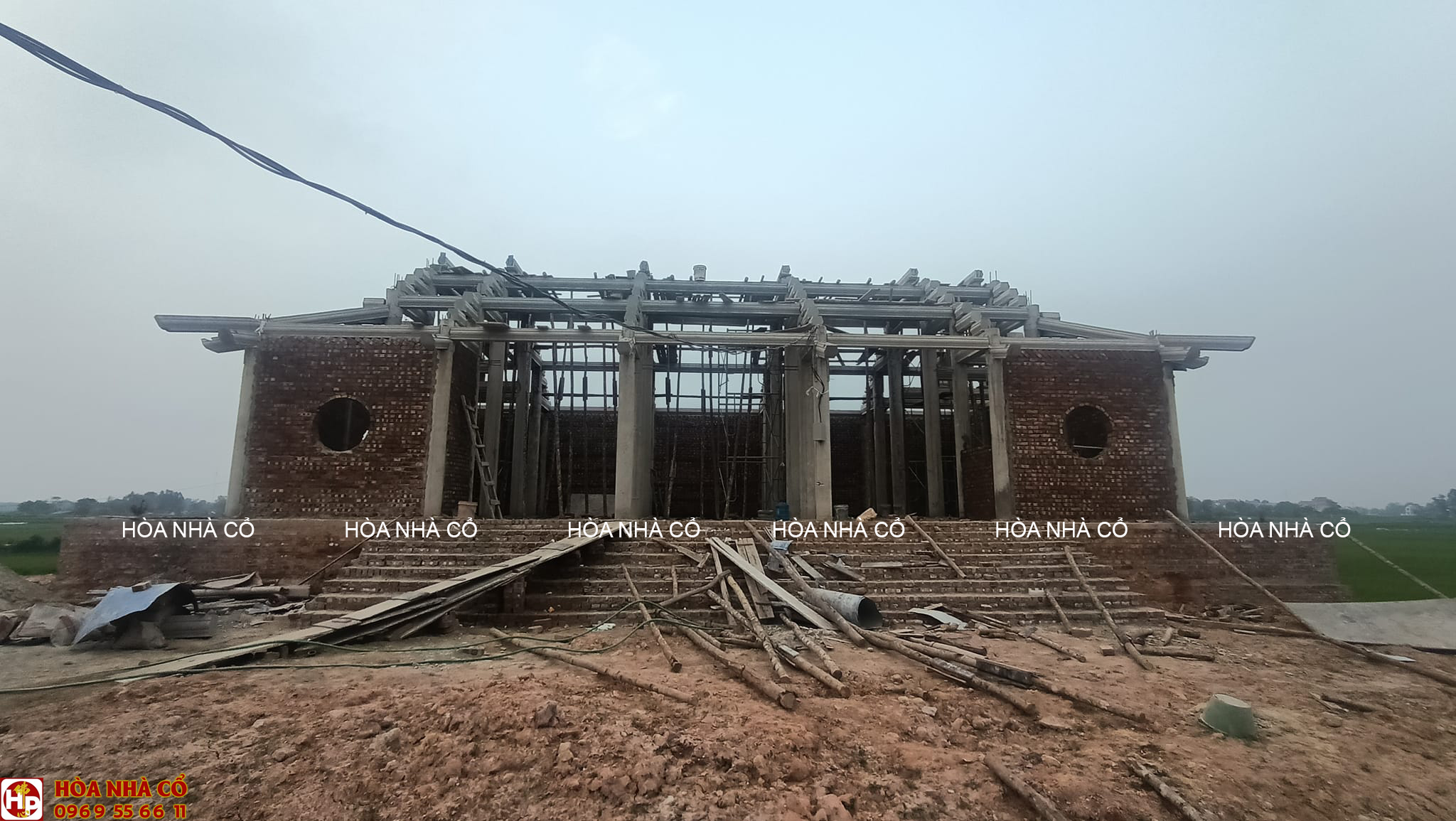 Bốn chín hàng cột lim già vài trăm năm tuổi cùng hàng trăm khối gỗ quý tạo thành hình hài ngôi nhà gỗ có một không hai. 60 cây vàng được giát vào hoành phi,...