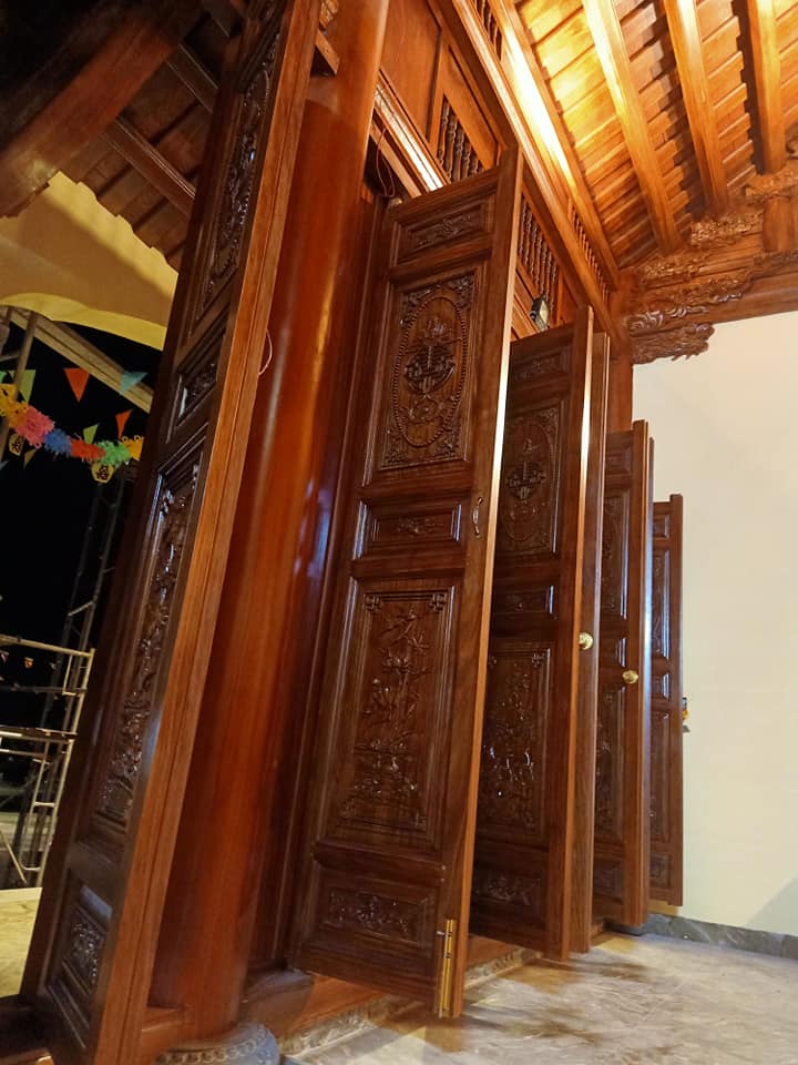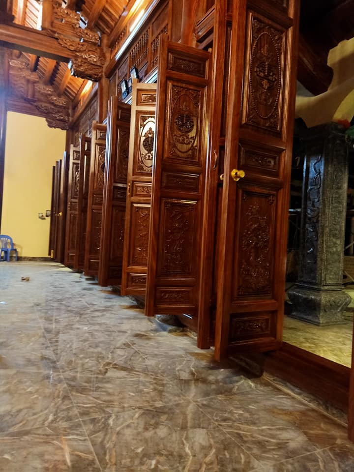 Bốn chín hàng cột lim già vài trăm năm tuổi cùng hàng trăm khối gỗ quý tạo thành hình hài ngôi nhà gỗ có một không hai. 60 cây vàng được giát vào hoành phi,...