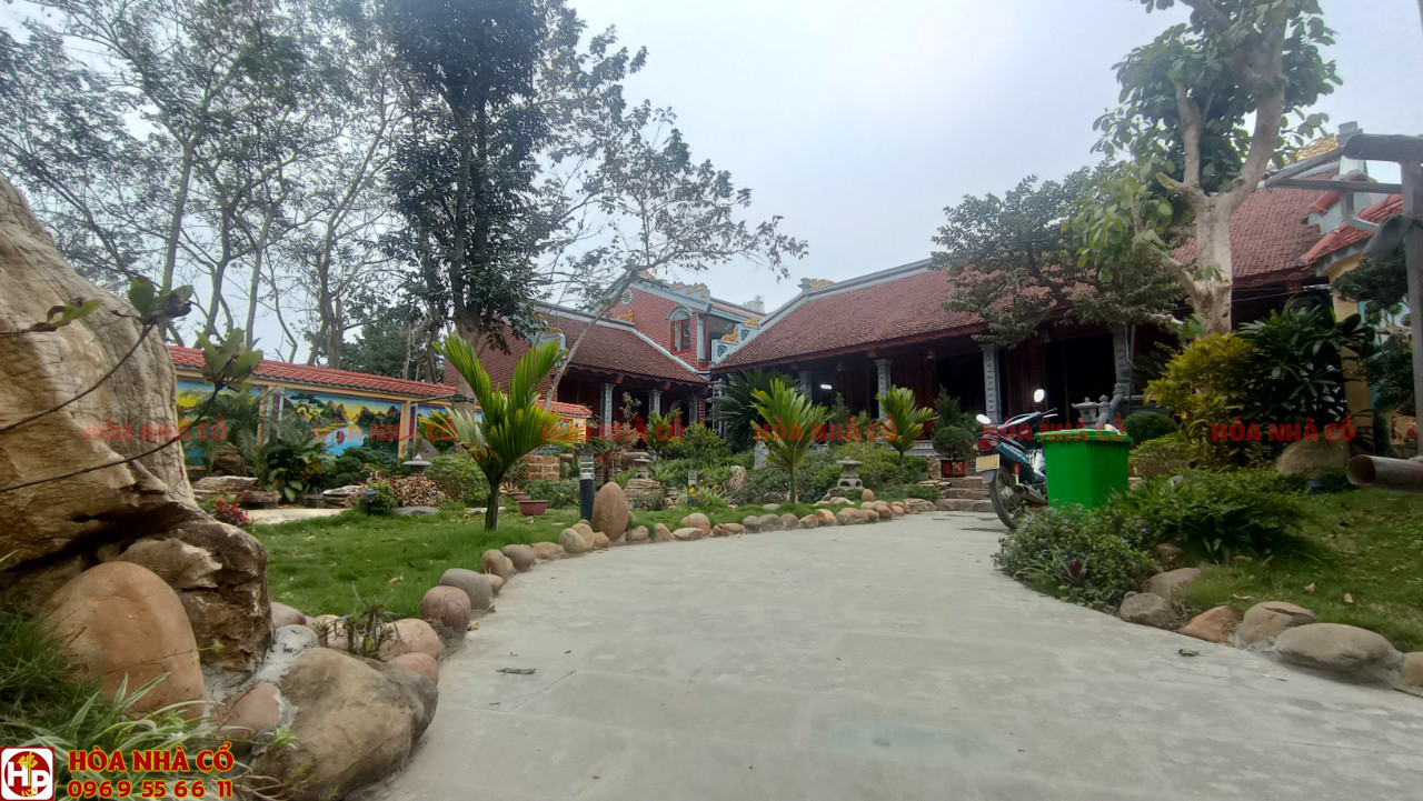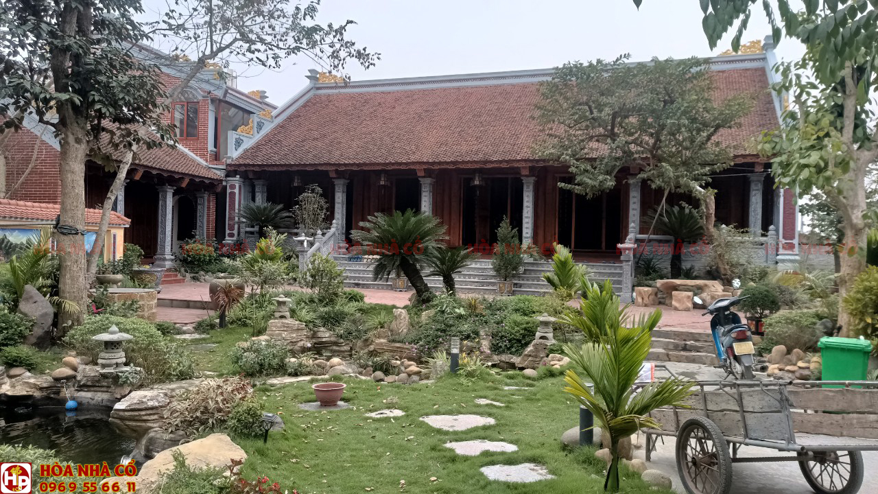 Nhà gỗ mít 5 gian kết hợp khuôn viên sân vườn nhà ở trong một diện tích rất rộng rãi.