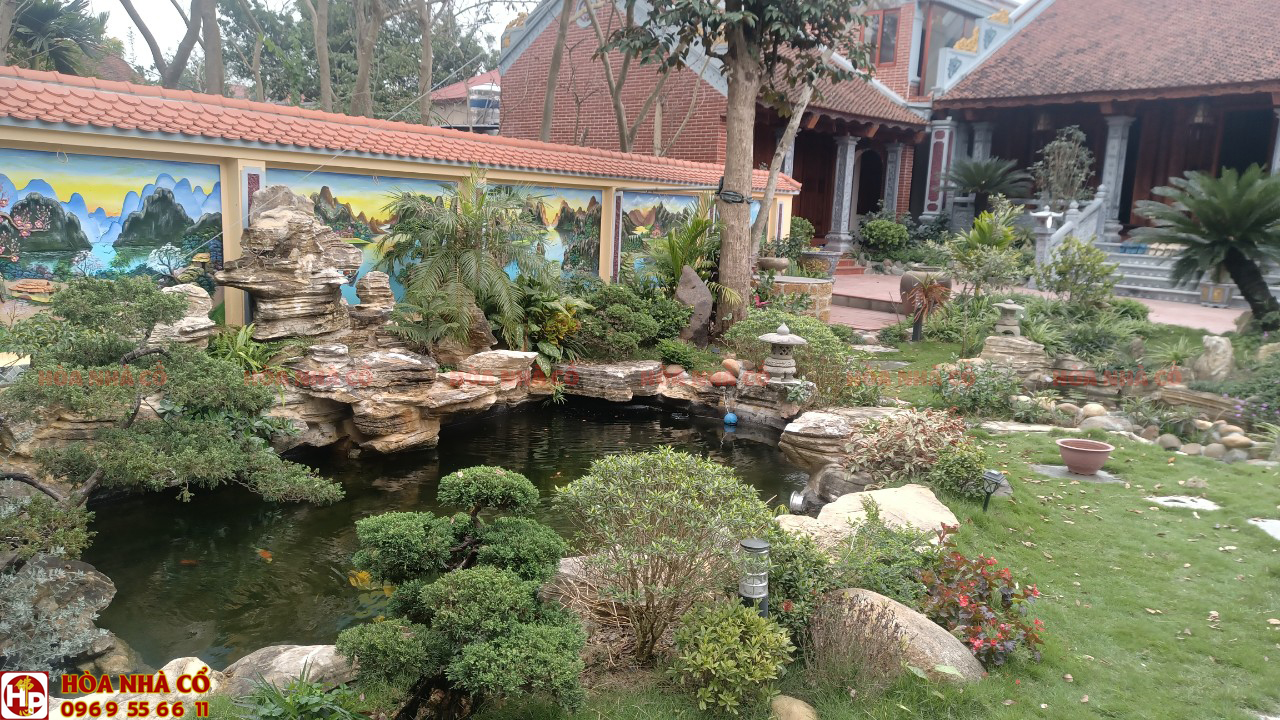 Đi từ ngoài vào với thiết kế lối đi trải bê tông với đá cuộn xếp dọc lối vào là hồ cá coi, núi giả, tiểu cảnh,... tạo nên sự phong thủy tinh tế cho cả khuôn viên.